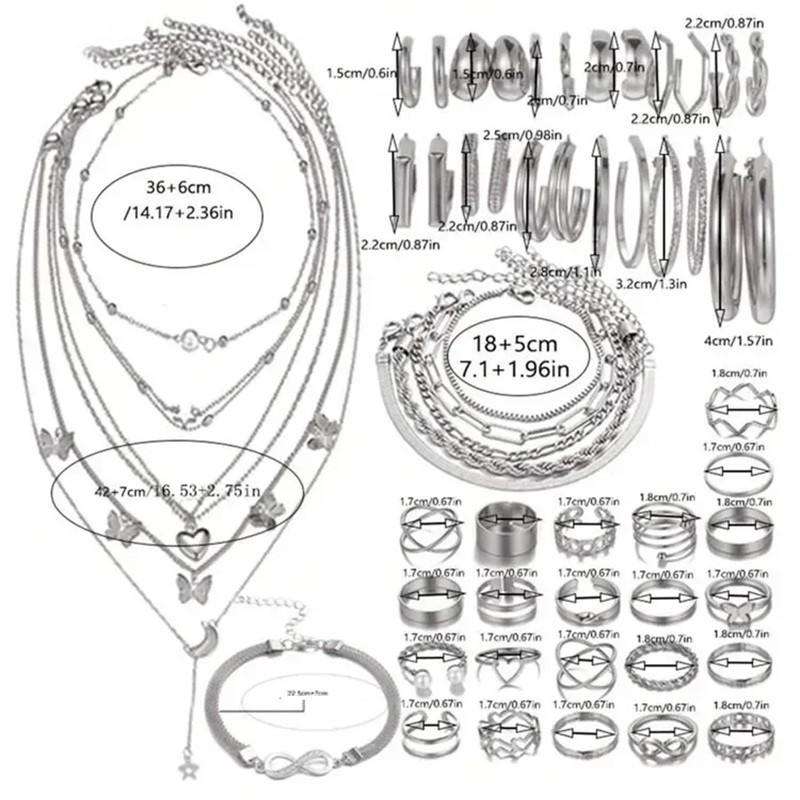 • Totaal: 57 stuks modieuze sieraden in één set