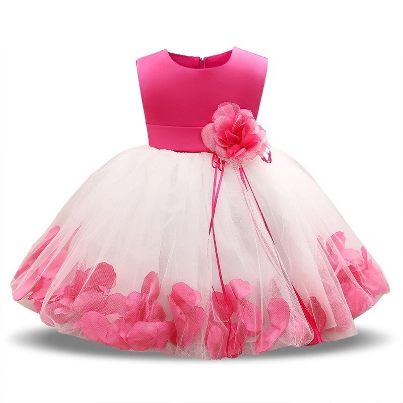 Prachtige meisjesjurk met een mooie roos rond de taille.