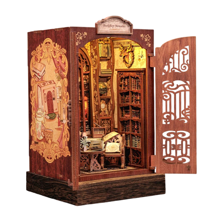 Deze mini houten boekenhoek is een prachtige bouwset voor alle liefhebbers van handwerk en miniaturen. Het model met afmetingen 11,5 x 9,5 x 17 cm maakt het mogelijk om een kleine wereld vol details te creëren die eruitziet als een echte kamer of poppenhuis. In de verpakking vindt u 137 kleine onderdelen, die na assemblage een realistisch tafereel vormen dat geschikt is als decoratie voor een plank, tafel of vitrinekast.