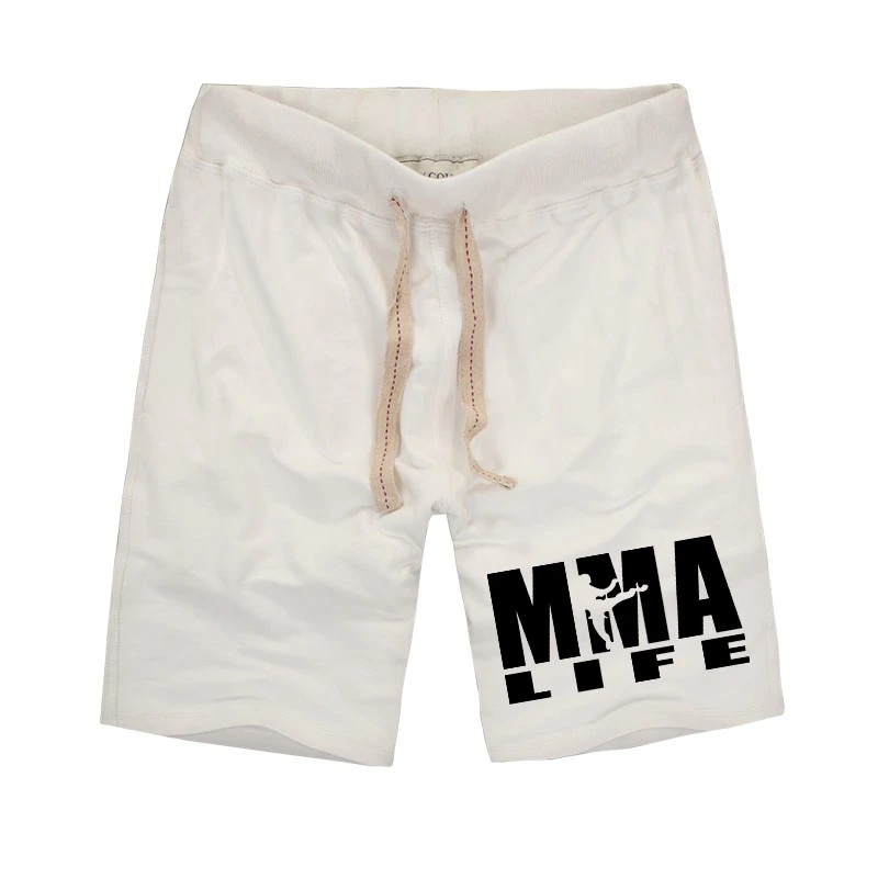 De shorts hebben een zwarte MMA LIFE-inscriptie op het been.
