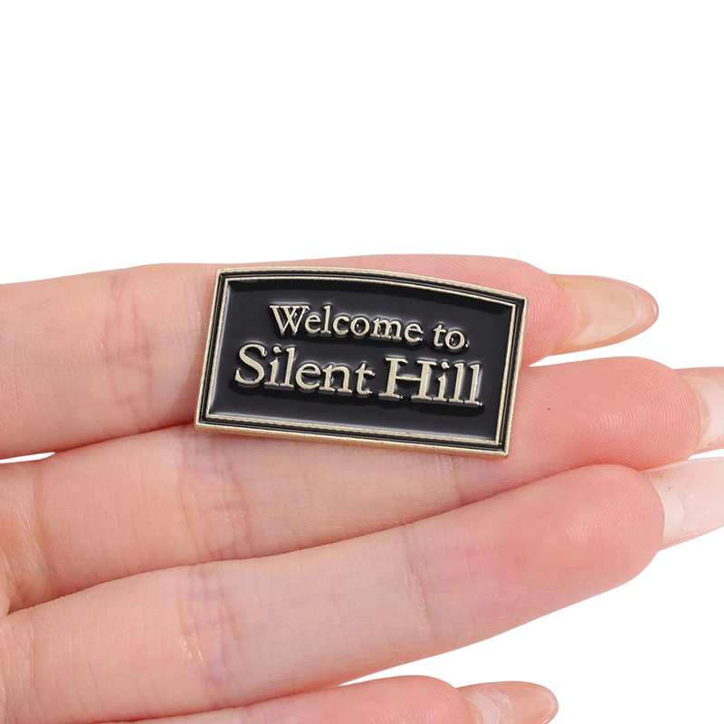 Modieuze broche 1,5 x 3 cm Met de tekst Welcome to Silent Hill Thematische metalen accessoire Zinklegering Horror stijl