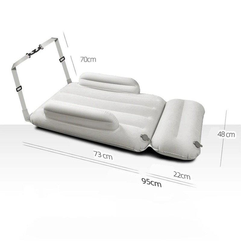 Deze opblaasbare matras voor kinderen met afmetingen 95 x 48 cm is de ideale oplossing voor een veilige en comfortabele slaap van uw kleintjes tijdens het reizen met de auto, het vliegtuig of de hogesnelheidstrein. Het is gemaakt van hoogwaardige PVC-materiaal, dat duurzaam, lichtgewicht en gemakkelijk schoon te maken is. Ergonomisch gevormd golfoppervlak zorgt voor optimale ondersteuning van het lichaam van het kind en comfortabel rusten, zelfs tijdens langere reizen. Dankzij de verstelbare riemen en stevige gesp kan de matras eenvoudig worden vastgemaakt, zodat deze op zijn plaats blijft tijdens het rijden. De dubbele zijblok van 10 cm biedt extra bescherming tegen wegglijden en verhoogt de veiligheid.