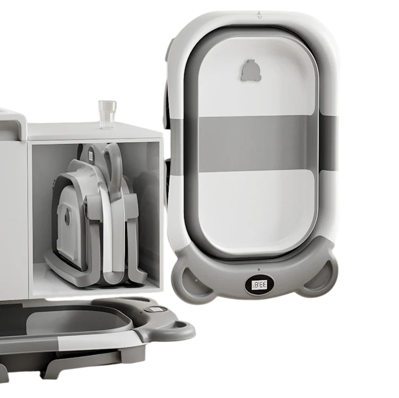 Het opvouwbare babybadje is ontworpen voor dagelijkse verzorging van pasgeborenen en kleine kinderen. Dankzij de compacte constructie vouwt u het gemakkelijk op en bergt u het op, wat vooral handig is in kleinere ruimtes. Het praktische ontwerp combineert functionaliteit met eenvoudig gebruik, zodat het baden van uw kind comfortabel en overzichtelijk is. De geïntegreerde thermometer helpt de watertemperatuur tijdens het baden te controleren.