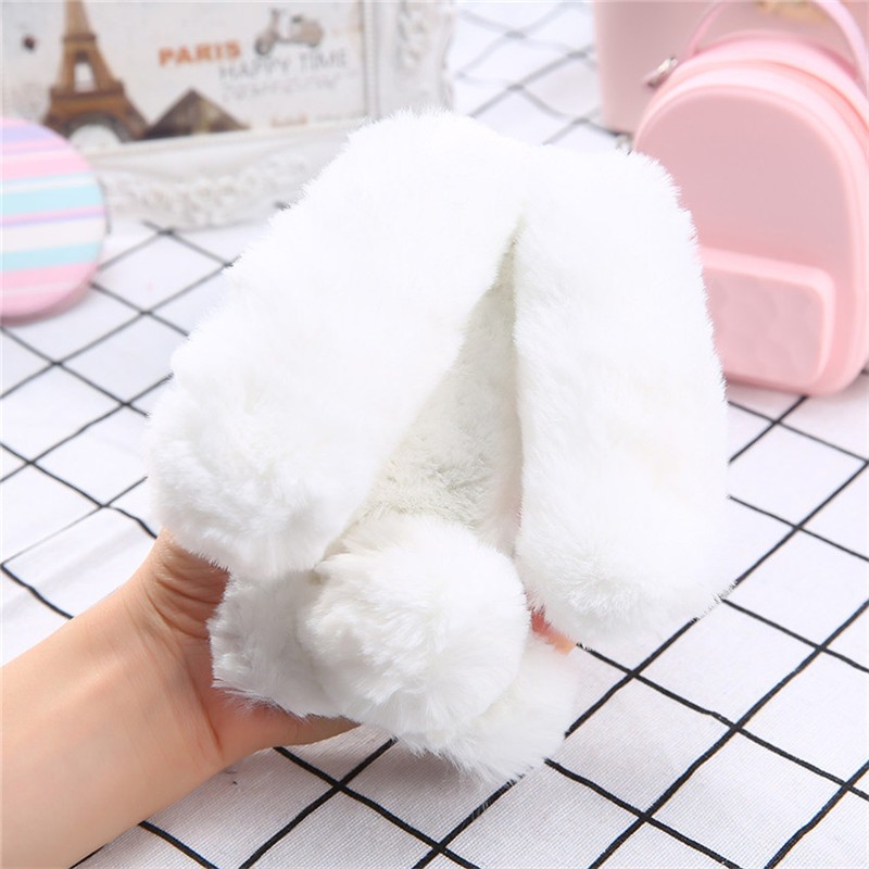 Een mooi, harig hoesje in de vorm van een konijntje zal elke jonge dame bekoren.