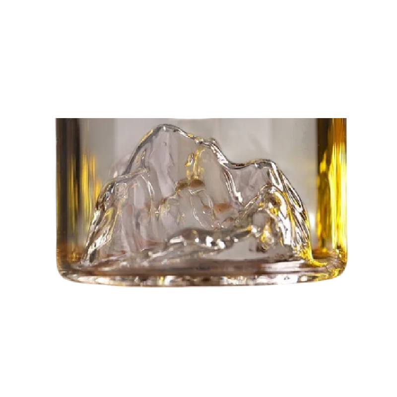 • Gedetailleerd gegraveerd motief van de Fuji-berg op de bodem van het glas