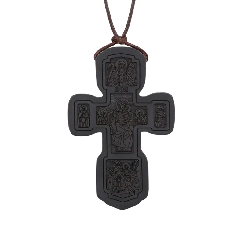Houten ketting met een orthodox kruis en iconisch reliëf. De verstelbare lengte zorgt voor comfortabel dagelijks dragen. Volledige beschrijving