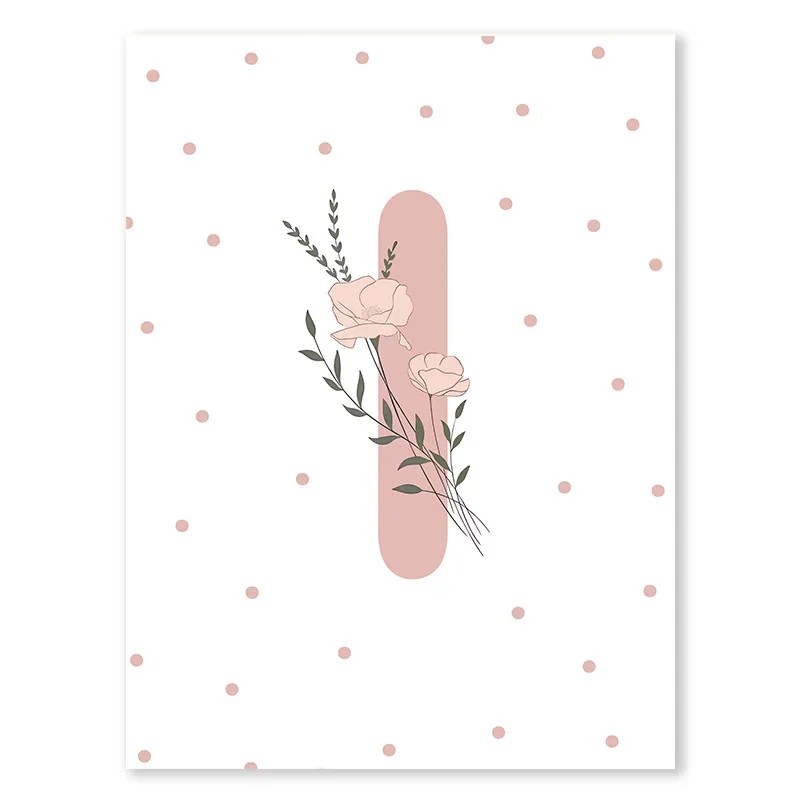 Poster 21 x 30 cm Roze Bloemeninitiaal „I“ Doek zonder lijst Muurdecoratie voor de kinderkamer en meisjesinterieur
