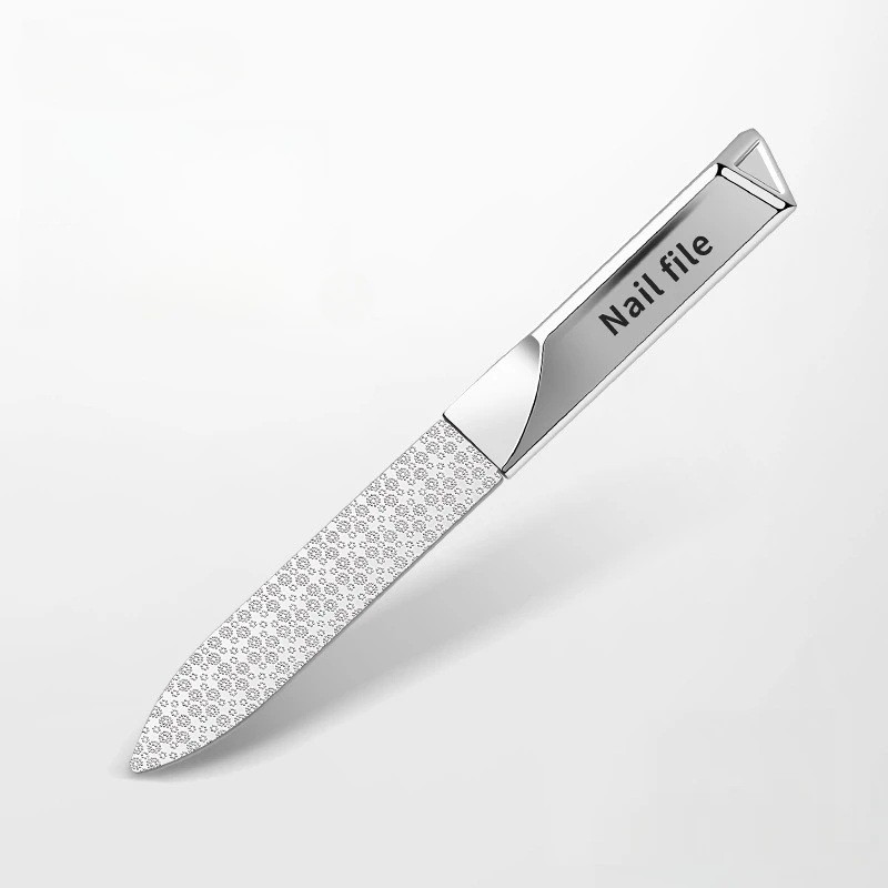 Duurzame dubbelzijdige vijl van roestvrij staal voor nauwkeurige afwerking en vormgeving van nagels, geschikt voor thuis- en professioneel gebruik. Volledige beschrijving
