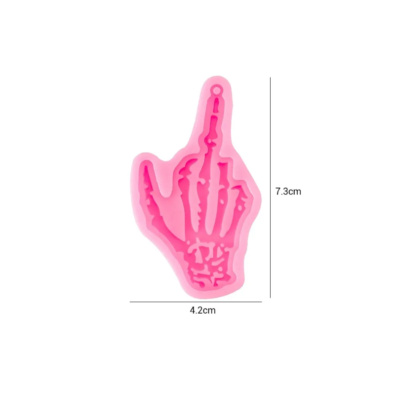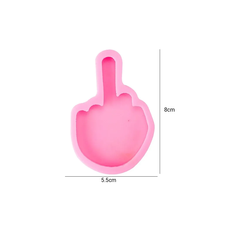 Roze siliconen mal van een handgebaar met een opgestoken vinger 8 × 5,5 cm voor hars sleutelhangers en decoraties