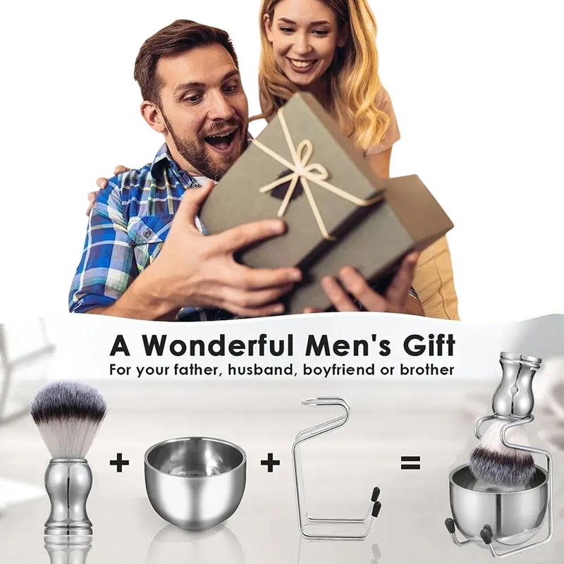 Scheerset voor baarden 3-in-1 RVS Kwast 10,5 x 3,4 cm Kom 8,2 x 5,8 cm Houder 8 x 11 cm Mannenset voor klassieke natte scheerbeurt