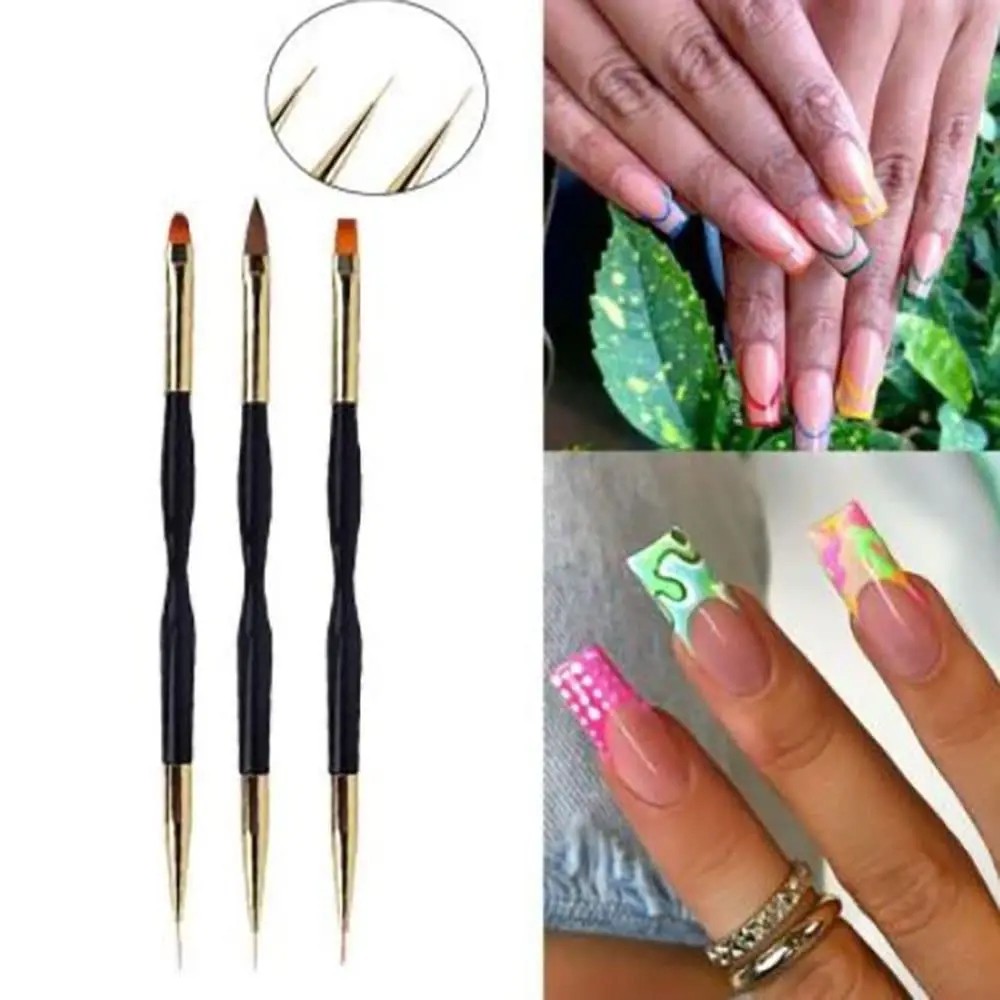Set van 3 dubbelzijdige cosmetische kwasten 17–17,6 cm Professionele penselen voor nagelkunst Dun kwastje voor nagellak Breder kwastje voor acryl en gel