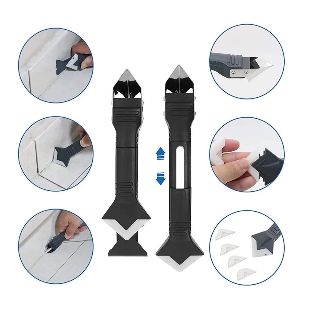 Deze set multifunctionele siliconenkrabber is ontworpen als een universele helper voor het repareren en renoveren van voegen in de badkamer, keuken en andere ruimtes. Het maakt het mogelijk om oude kit effectief te verwijderen, het oppervlak voor een nieuwe applicatie voor te bereiden en vervolgens de voeg in een schone en gelijkmatige vorm te vormen. Dankzij de combinatie van meerdere functies in één gereedschap bespaart het tijd en ruimte en vereenvoudigt het het hele werkproces. De ergonomische vorm van de handgreep zorgt voor een comfortabele grip en nauwkeurige geleiding van het gereedschap. Het resultaat zijn esthetisch schone en professioneel uitziende voegen zonder onnodige ongelijkheden.