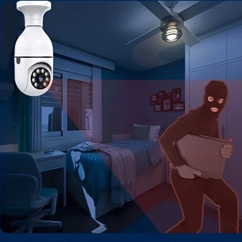 Deze set beveiligingscamera's is bedoeld voor het bewaken van ruimtes in huis, op kantoor of andere binnenlocaties. De camera heeft een ontwerp dat lijkt op een klassieke gloeilamp en is bedoeld voor installatie in een E27 fitting, wat een eenvoudige plaatsing zonder ingewikkelde montage mogelijk maakt.