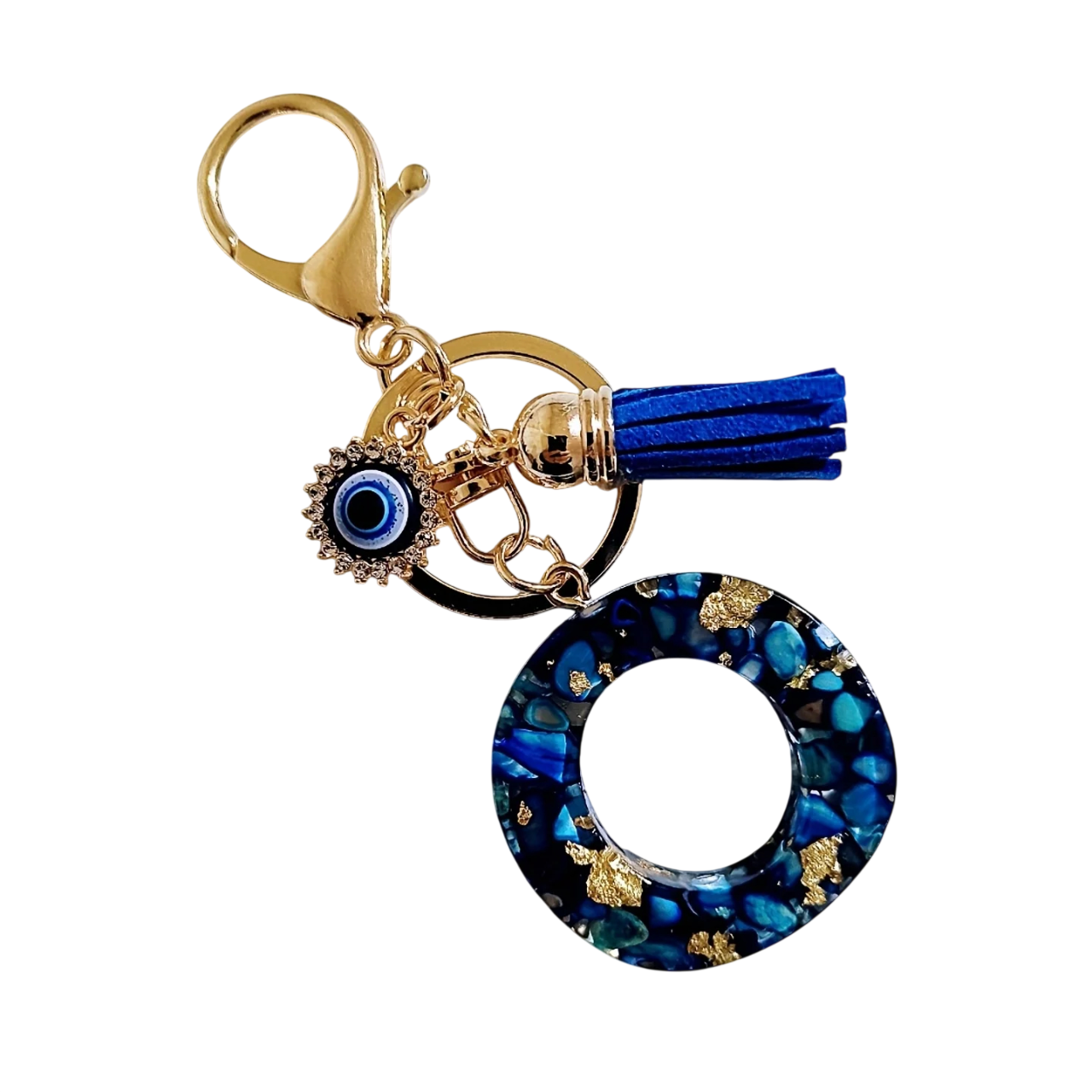 Sleutelhanger 4 cm Hars sleutelhanger Blauwe initialen en beschermend oog Decoratieve versiering voor handtas rugzak Cadeau voor vrouwen