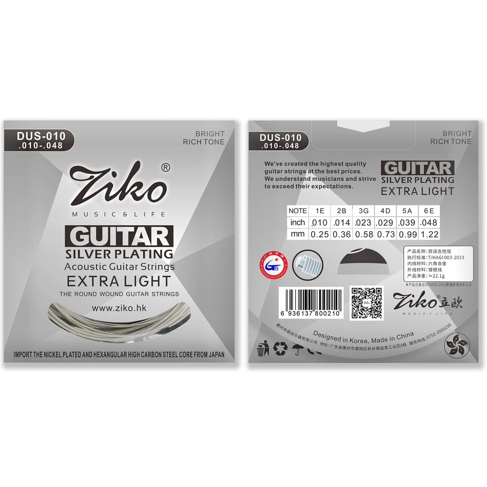 Model DUS-010 is geschikt voor alle soorten akoestische gitaren en biedt een glad oppervlak voor comfortabel spelen zonder vervelende wrijving. De snaren hebben een snelle geluidsrespons en behouden dankzij de nauwkeurige productie hun stemming, zelfs bij langdurig spelen of temperatuurveranderingen. De verzilverde afwerking biedt niet alleen een elegante uitstraling, maar ook hogere gevoeligheid voor dynamiek in het spel en duidelijkere klankhelderheid.