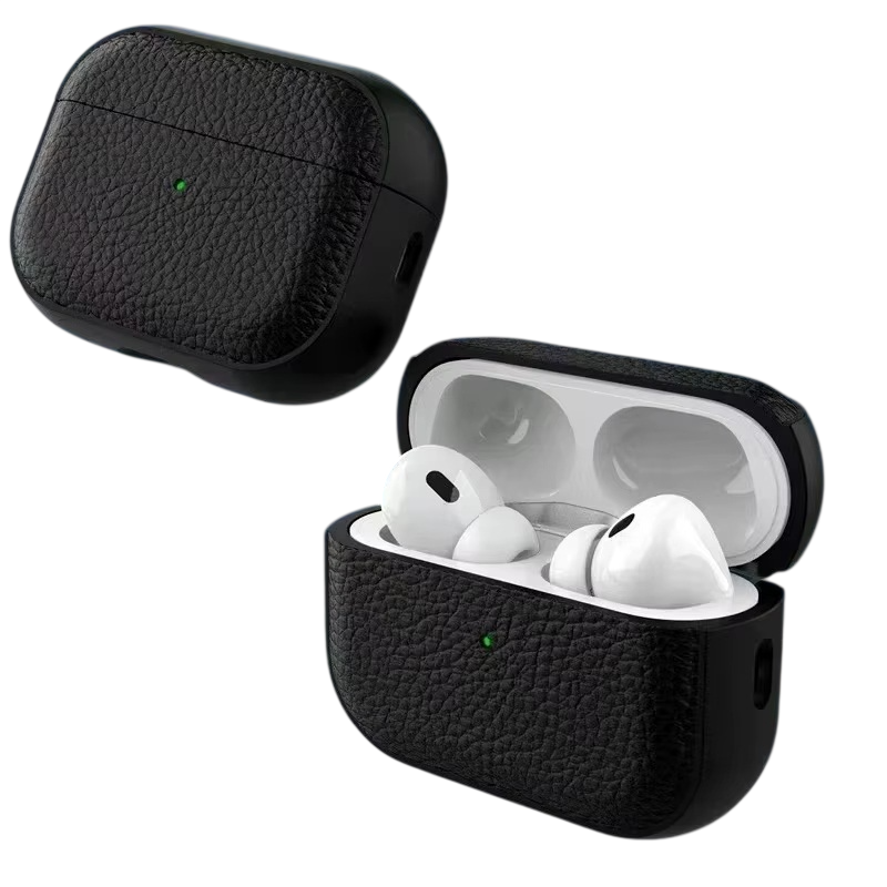Exclusief hoesje van lychee leer voor Apple AirPods Pro 2, met karabijnhaak voor comfortabel vervoer, beschermt tegen stof en krassen, ondersteunt draadloos opladen. Volledige beschrijving