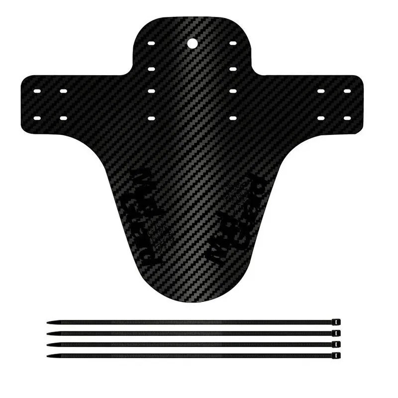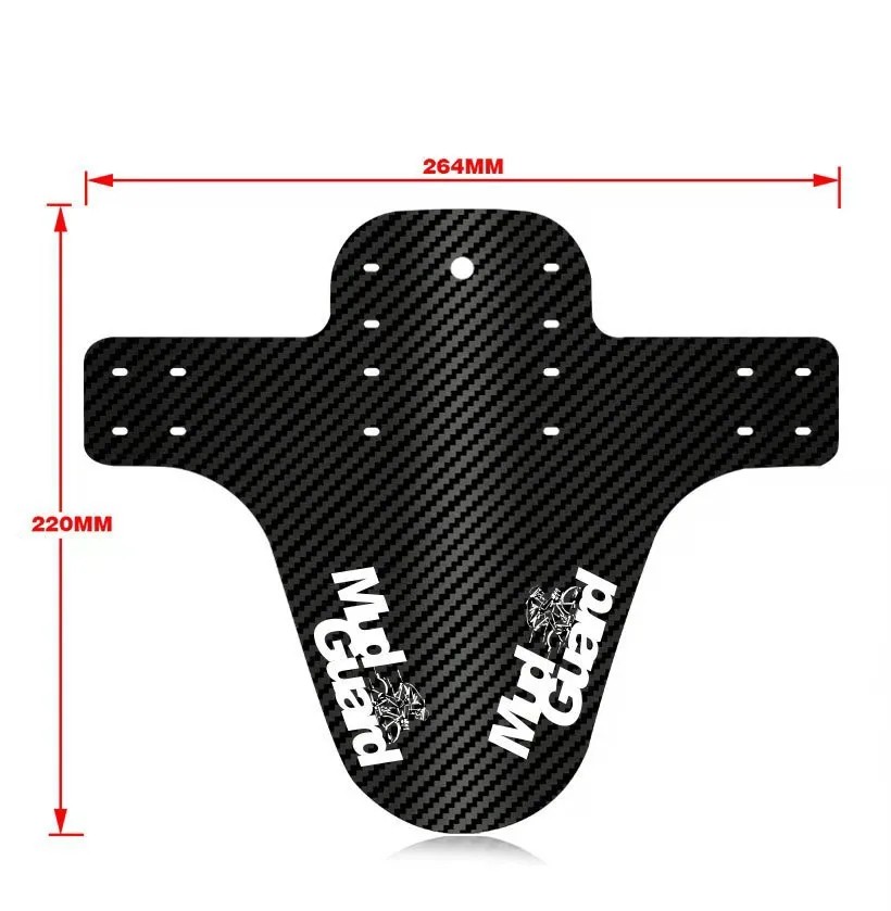 De modderkap is gemaakt van flexibel en duurzaam materiaal met een dikte van 0,8 mm, dat goed zijn vorm behoudt, maar toch licht is en gemakkelijk te buigen – hierdoor absorbeert het goed schokken van vliegende modder of stenen. Het gekleurde carbonpatroon geeft een moderne sportieve uitstraling en beschermt tegelijkertijd het oppervlak tegen krassen. De modderkap is geschikt voor mountainbikes, racefietsen, trekkingfietsen en e-bikes.
