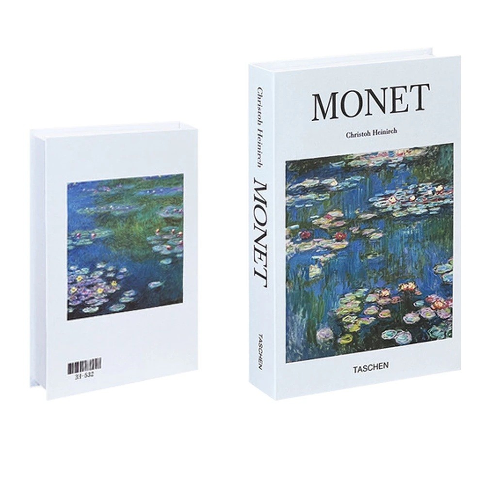Elegante valse boek met opbergruimte geïnspireerd op de schilderijen van Monet brengt een vleugje artistieke sfeer in uw interieur. Het ontwerp met lelie motief op het wateroppervlak straalt rust, harmonie en tijdloosheid uit. Op het eerste gezicht lijkt het een stijlvolle kunstpublicatie die perfect tussen andere boeken in de bibliotheek of werkkamer past.