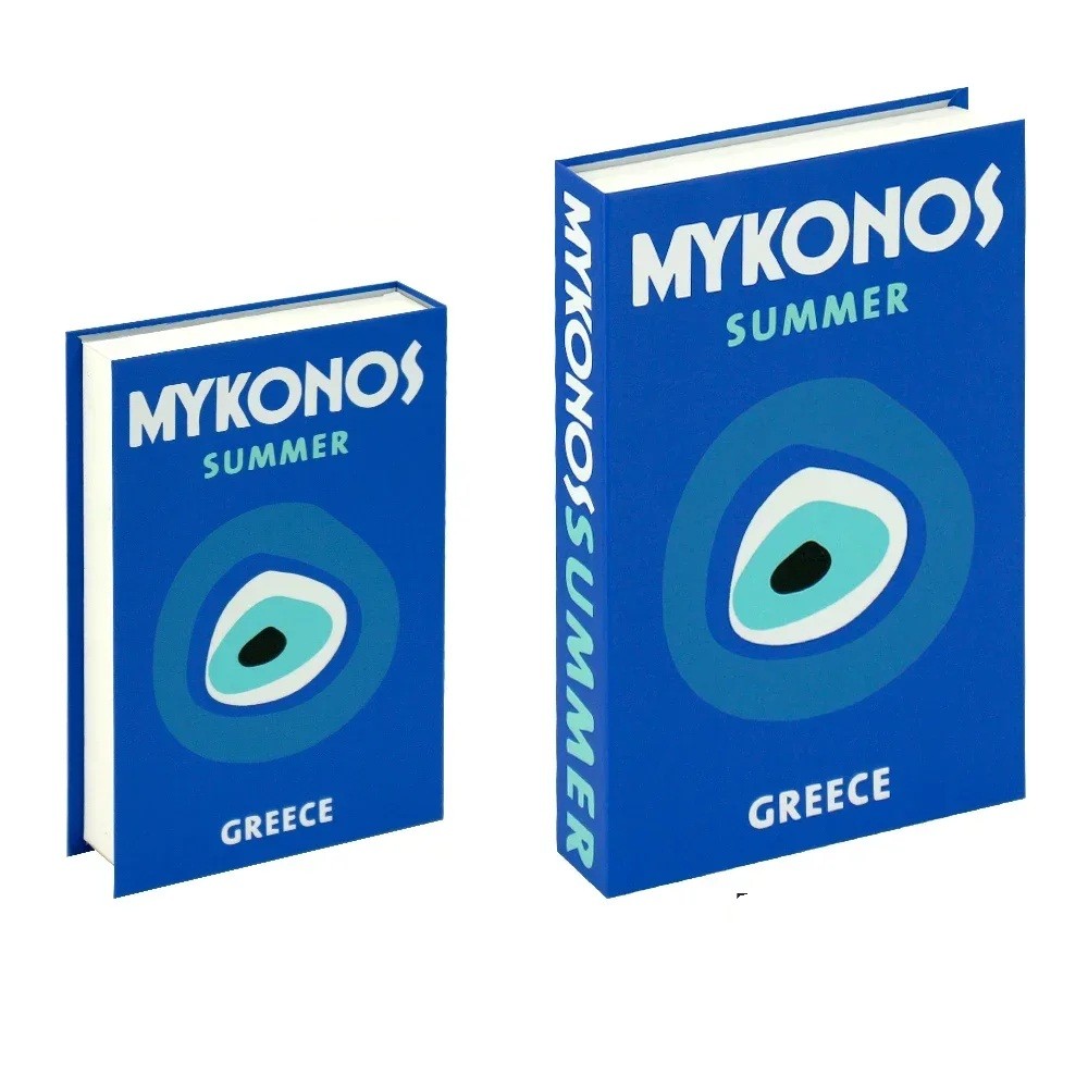 Valse boek met opbergruimte, decoratief, openend, Mykonos zomer, opbergruimte in boekdesign, moderne decoratie