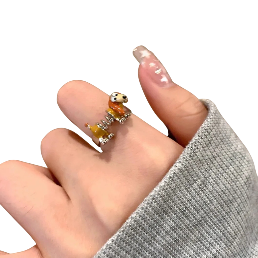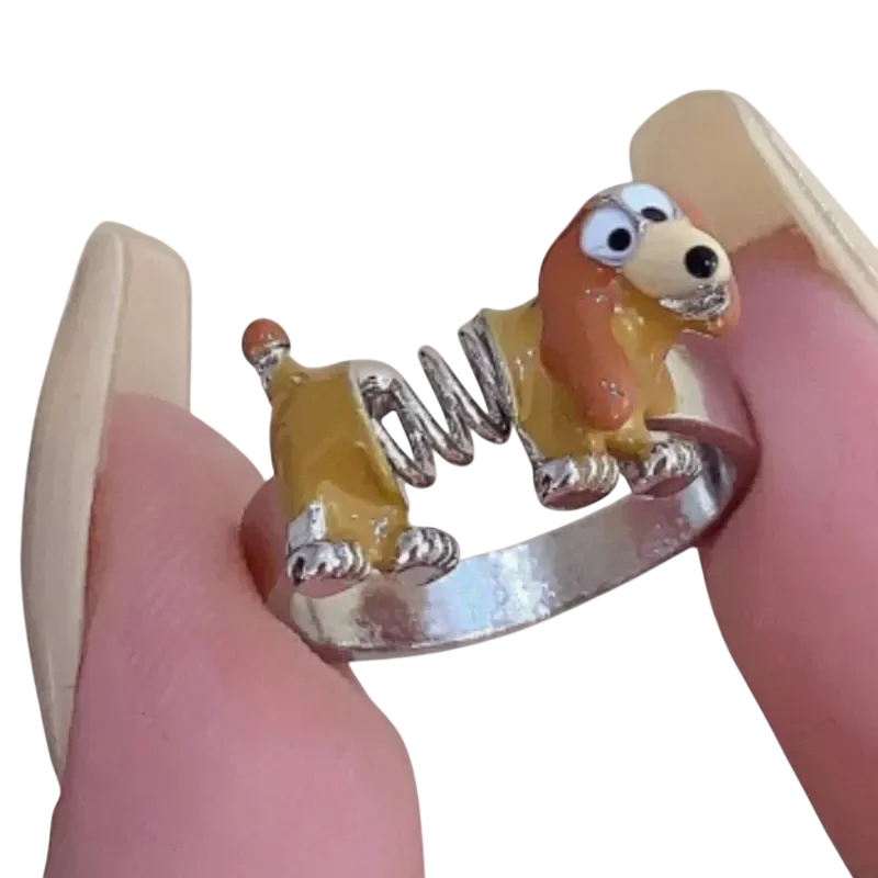 Verstelbare maat Damesring in de vorm van een teckel Aluminiumlegering RVS Sieraad voor hondenliefhebbers Stijlvol sieraad