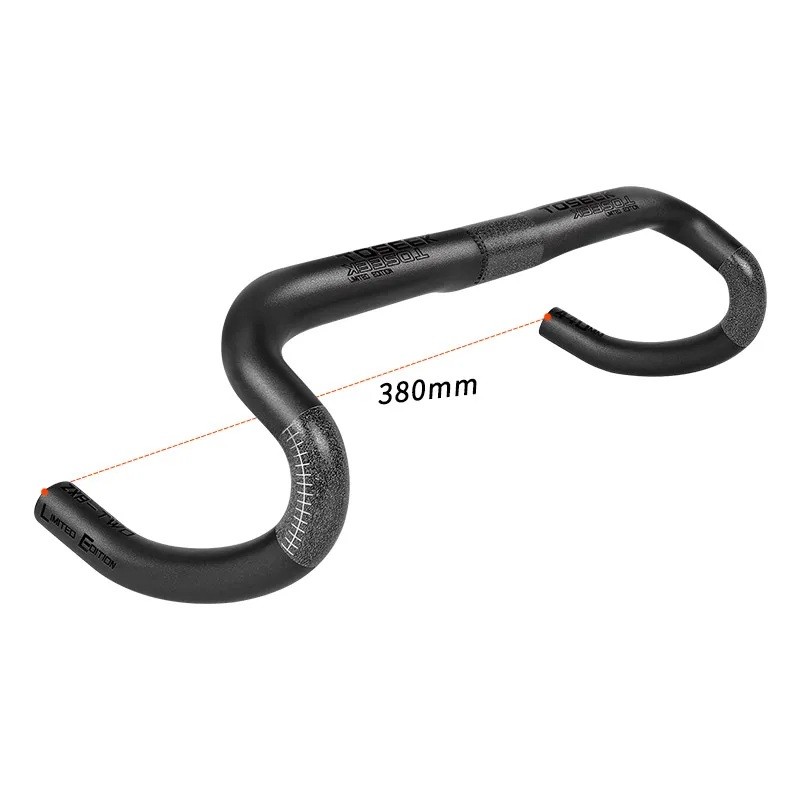 De breedte van het stuur bedraagt 380 mm (DROP C-C), wat overeenkomt met een smallere uitvoering die geschikt is voor nauwkeuriger sturen van de fiets. Deze maat zorgt voor effectieve controle en een natuurlijke handpositie. De vorm van het drop bar type biedt de mogelijkheid om grip te wisselen tussen de boven- en onderkant.