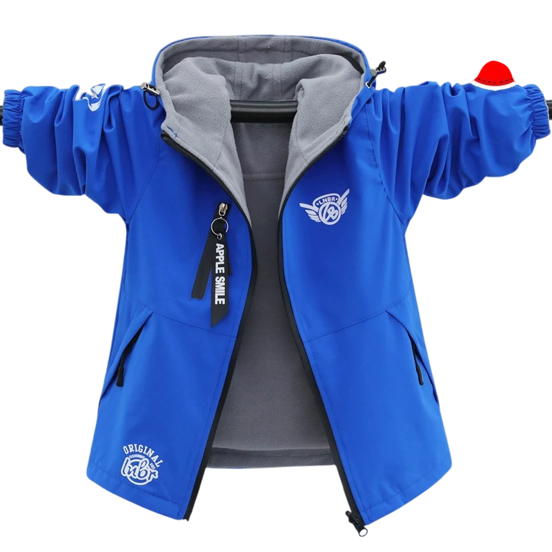 Warme winter jongensjas met capuchon, stevige ritsen en praktische zakken. Aangenaam om te dragen, geschikt voor koud weer, duurzaam en comfortabel. Volledige beschrijving